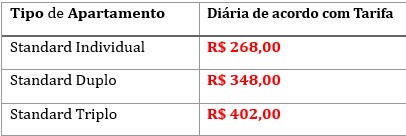 - Diárias iniciam às 12:00 e encerram às 12:00;